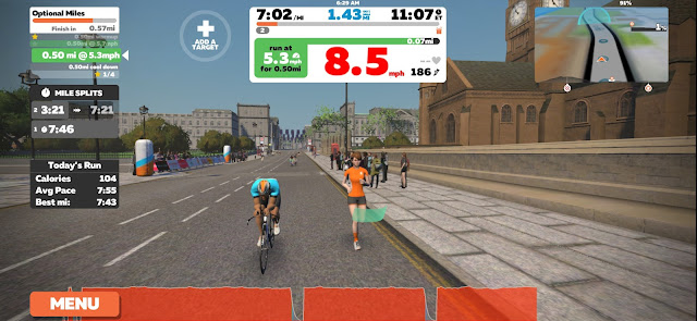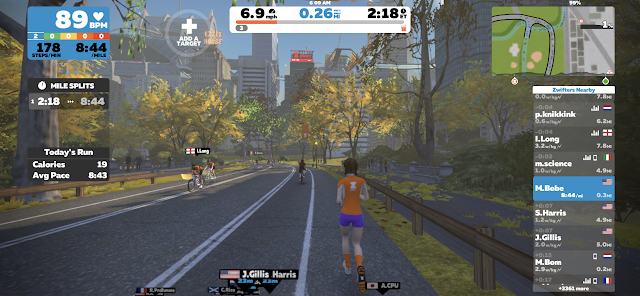 Zwift is basically a platform that allows you to run virtually with other runners! And you can run in other parts of the world! It makes treadmill running FUN! Yes...I said FUN!