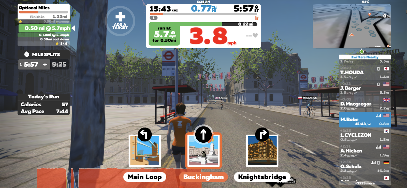 During your run you get options on where you want to turn. Here I could go to straight to Buckingham, turn left to run the main loop, or turn right to Knightsbridge. If you don't choose it will just route you to the one that is already selected.